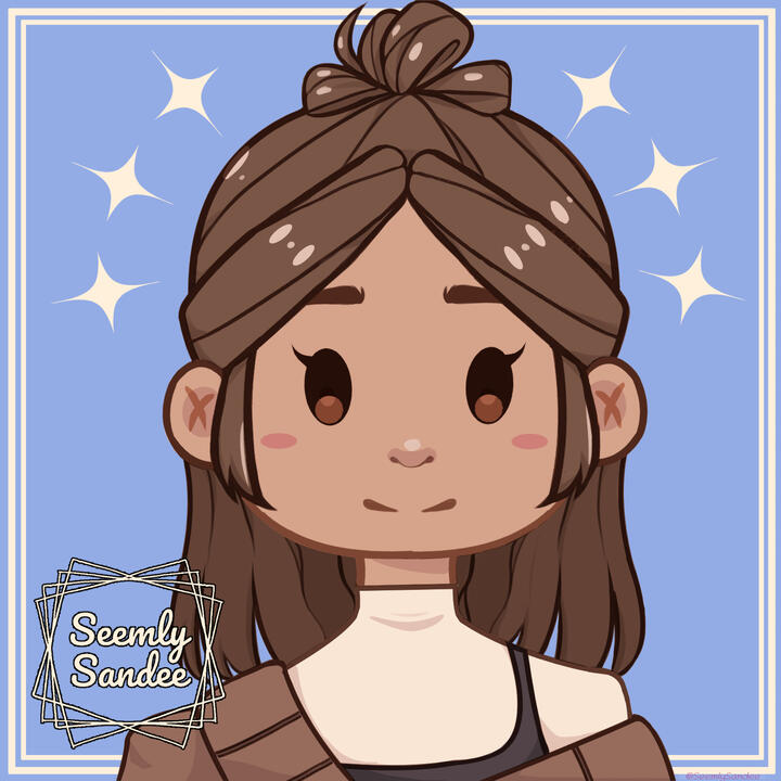 The client, unless a specific situation is discussed beforehand, is allowed to use the commissioned artwork, giving the proper credit to the artist (SEEMLYSANDEE on Twitter, Instagram, Ko-Fi, Carrd), for: